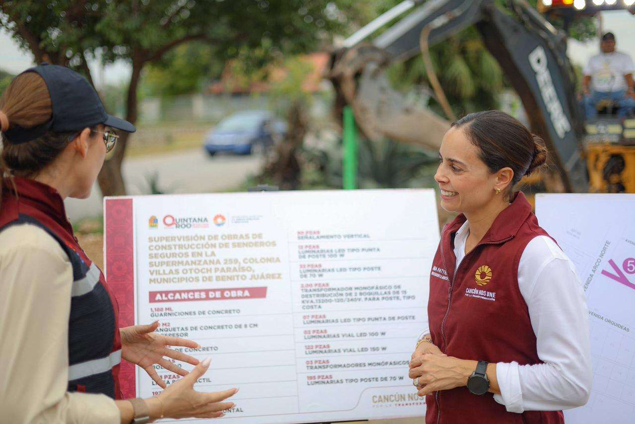 La Presidenta Municipal, Ana Paty Peralta, realizó un recorrido de supervisión de la obra de construcción del Sendero Seguro en la Supermanzana 259, Colonia Villas Otoch Paraíso, como parte de las acciones para mejorar el entorno urbano de esta zona.