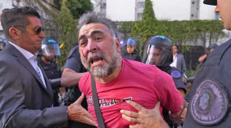 La imagen del camarógrafo Facundo Tedeschini, con la cara ensangrentada arrastrado con las manos atadas tras ser brutalmente atacado por unos diez policías, por filmar la detención de doce activistas de Greenpeace evidenció la violencia contra la prensa por parte del gobierno del presidente, el ultraderechista Javier Milei.