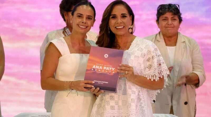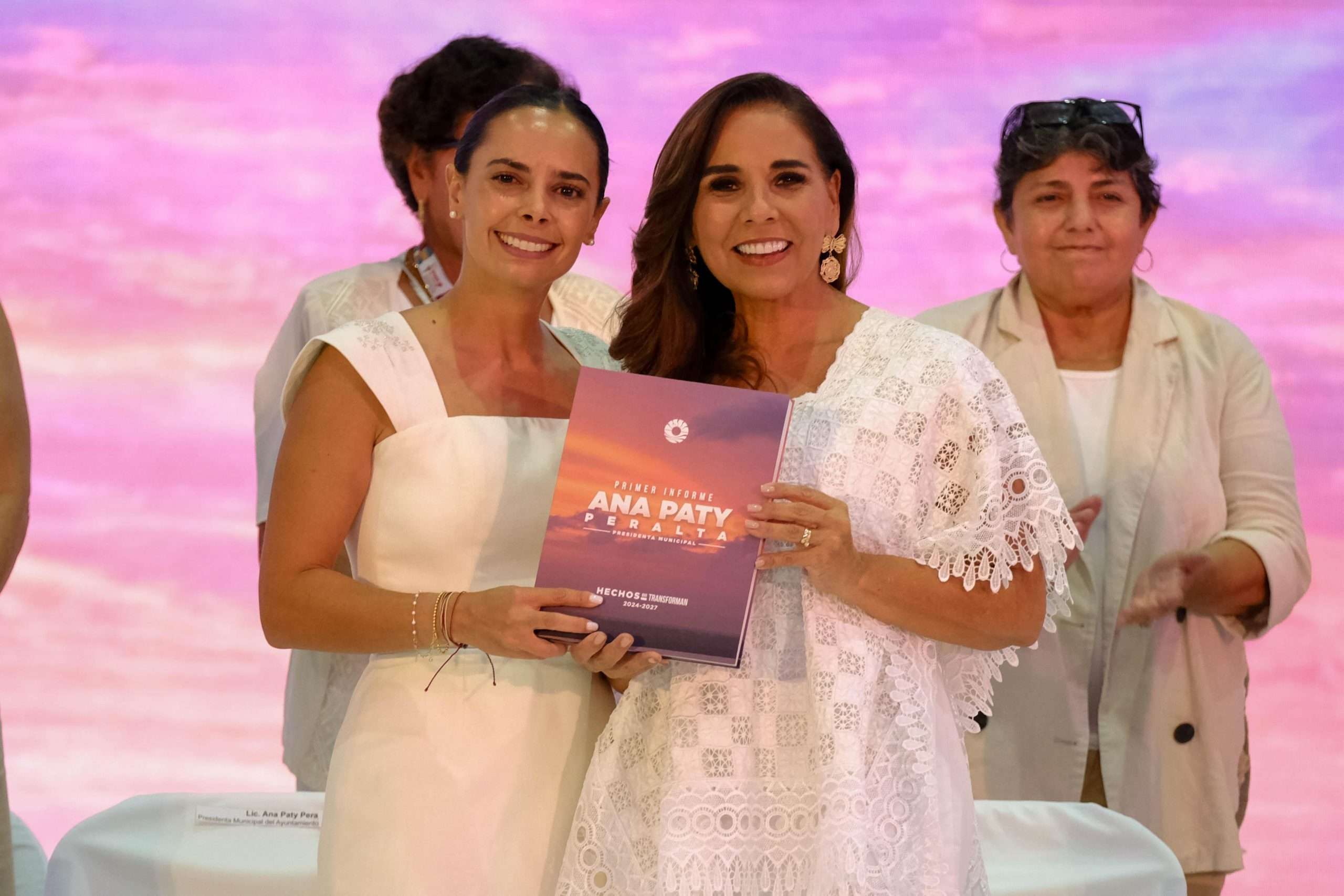 Mara Lezama recibió el libro que guarda los logros del primer año de administración de la edil benitojuarense junto con los titulares del Poder Judicial el magistrado Heyden Cebada Rivas y del Legislativo el diputado Renán Sánchez Tajonar. La presidenta municipal Ana Paty Peralta reconoció que la gobernadora Mara Lezama ha demostrado que cada día si es posible gobernar de manera diferente, siendo la mejor gestora y ha traído justicia social: “Gracias por iniciar desde Cancún la transformación”.