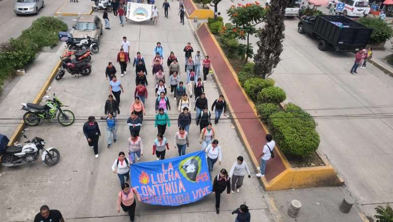 En el quinto día de la jornada de protestas en el marco de los 11 años de la desaparición de los 43 estudiantes de la Normal de Ayotzinapa, ocurrida en Iguala en 2014, cientos de contingentes de la Federación de Estudiantes Campesinos Socialistas de México (FECSM), madres y padres, marcharon en Chilpancingo para demandar la presentación con vida de sus hijos.