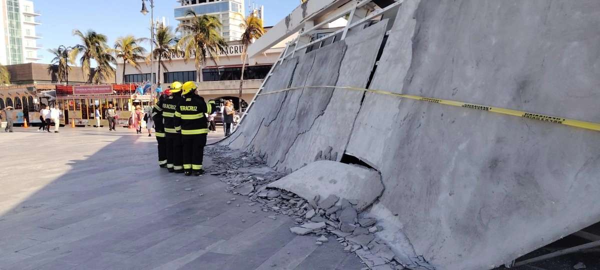 Una techumbre recientemente instalada en la Plaza del Heroísmo Veracruzano se derrumbó la tarde de este sábado 7 de febrero, sin dejar personas lesionadas.