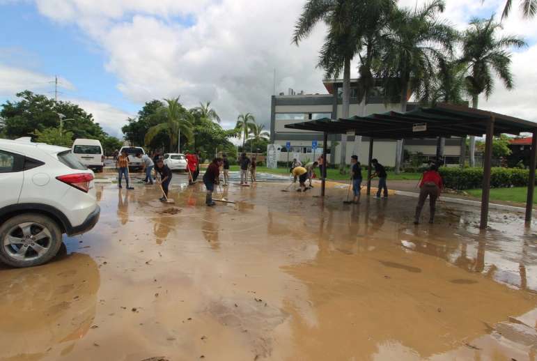 A pesar de que el domingo cayeron de 159 milímetros de precipitación en esa zona, las afectaciones no fueron mayores «gracias a los trabajos preventivos realizados previamente, como la colocación de sacos de arena en los accesos, la limpieza de canales pluviales y el desazolve de los canales Tamarindos y El Zarco, el ingreso de agua y lodo a las instalaciones fue menor al de eventos anteriores.
