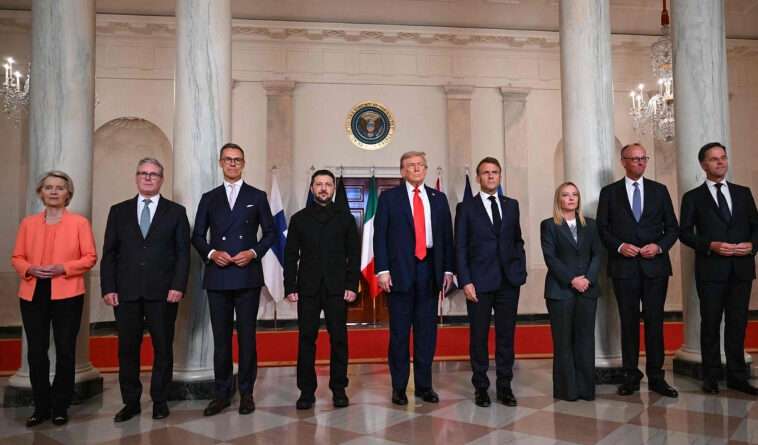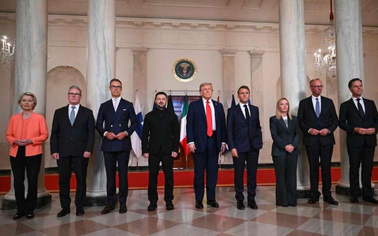 Trump se encontró en la Casa Blanca con su par de Ucrania, Volodymir Zelensky, el secretario general de la Organización del Tratado del Atlántico Norte, Mark Rutte; la presidenta de la Comisión Europea, Ursula Von der Leyen; el primer ministro de Reino Unido, Keir Starmer; la primera ministra de Italia, Giorgia Meloni; el presidente de Finlandia, Alexander Stubb; el canciller federal de Alemania, Friedrich Merz; y el presidente de Francia, Emmanuel Macron.