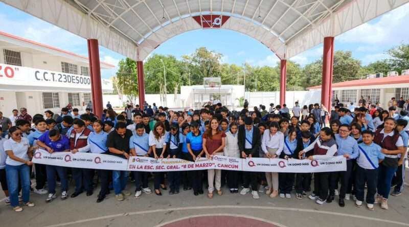 Cumple Mara Lezama y entrega nuevo domo a la Secundaria General “8 de Marzo” en Cancún
