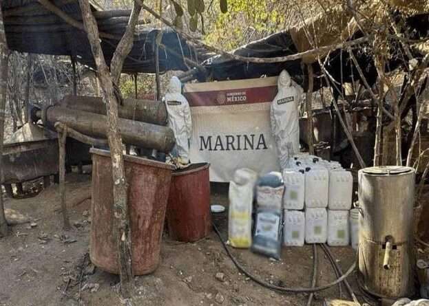 También en Culiacán, la Fiscalía General de la República (FGR) y Secretaría de Marina (Semar) localizó y neutralizó un laboratorio clandestino con precursores químicos y aditamentos para la fabricación de droga sintética, donde fueron asegurados 6 mil 95 kilogramos de sustancias químicas, un reactor y material diverso, en las inmediaciones del poblado Corral Viejo.