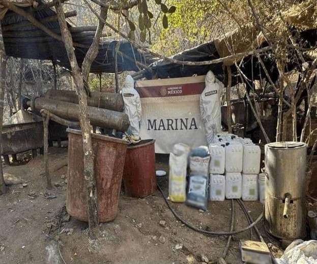 Mientras, en el municipio de Álamos, Sonora, derivado de información de inteligencia, efectivos de la FGR y Semar localizaron y neutralizaron narcolaboratorio en el que aseguraron 750 kilos de metanfetamina, 2 mil 335 kilogramos de sustancias químicas empleadas para la fabricación de droga sintética, cuatro reactores y material diverso, en las inmediaciones del poblado El Taymuco.