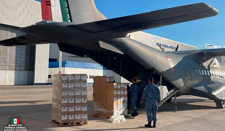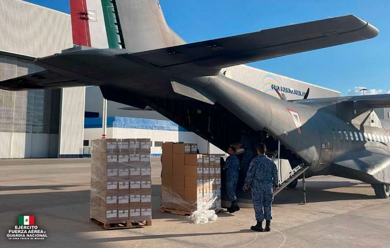 La Defensa informó que desde la Base Aérea Militar No. 1, ubicada en Santa Lucía, Estado de México, despegaron dos aeronaves CASA C-295, que transportaron 500 despensas y mil 500 litros de agua embotellada con destino a las zonas donde aún persisten afectaciones derivadas de los fenómenos hidrometeorológicos que impactaron esta parte del país.