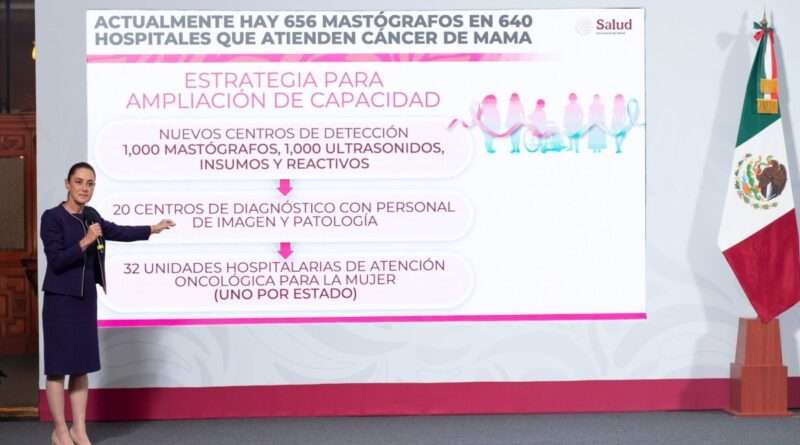 La Presidenta Claudia Sheinbaum Pardo anunció una inversión de 8 mil millones de pesos (mdp) que se destinará al Modelo de Atención Universal de Cáncer de Mama, que marcará un antes y un después en la atención de esta enfermedad, que en México es la principal causa de muerte en mujeres, y para ello se adquirirán, entre 2026 y 2027, mil mastógrafos, mil ultrasonidos, —que se sumarán a los 656 mastógrafos que ya están en operación en 640 hospitales—, que estarán en los Nuevos Centros de Detección, además se aperturarán 20 Centros de Diagnóstico con personal de imagen y patología para la interpretación de los estudios y se construirán 32 Unidades Hospitalarias de Atención Oncológica para la mujeres, uno en cada estado.