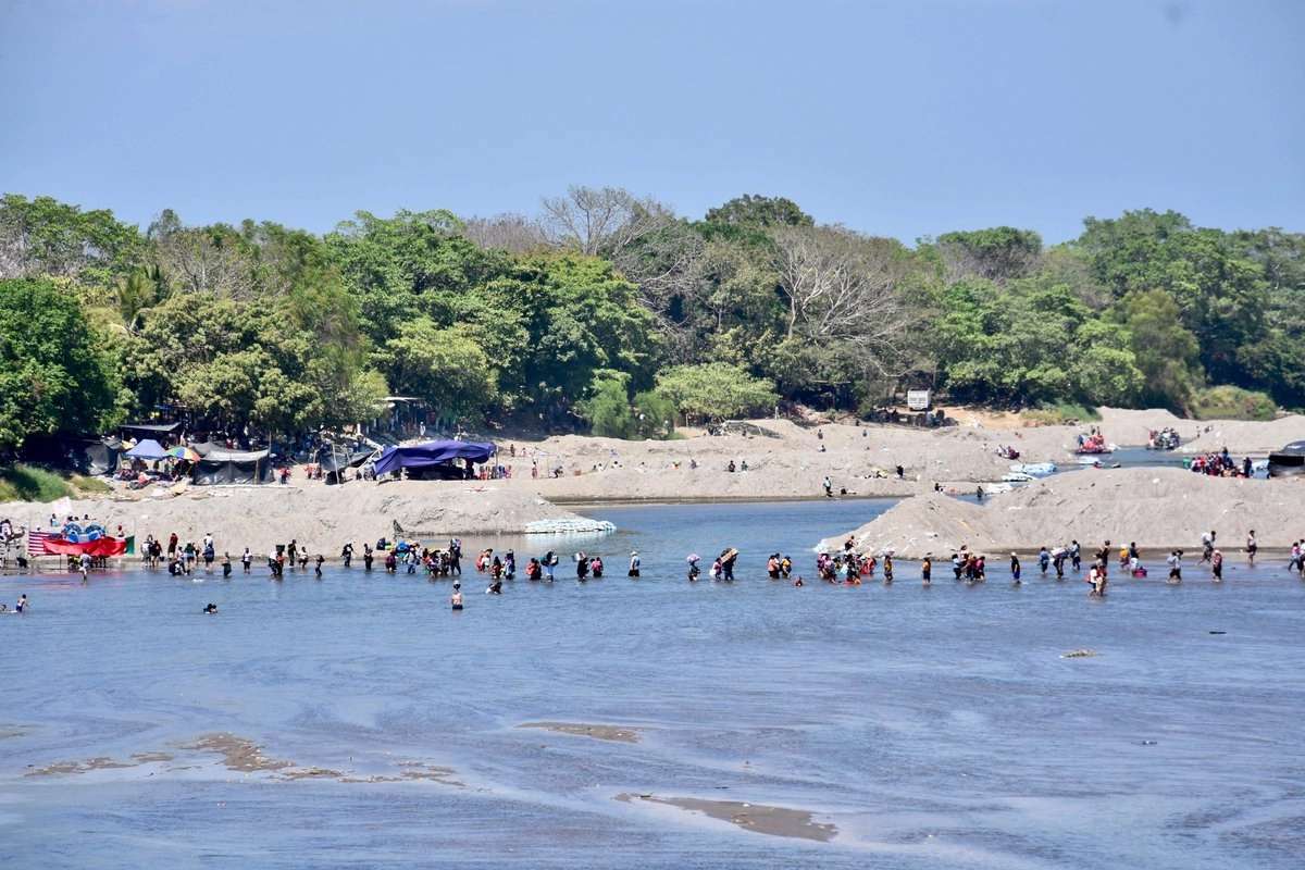 El caudal que alcanza los 150 metros de ancho y unos siete metros de profundidad en la temporada de lluvias, actualmente muestra espacios de islotes y zonas que no rebasan los 30 centímetros de tirante, aseguró Juan Antonio Ruiz, Director de Protección Civil de Suchiate.