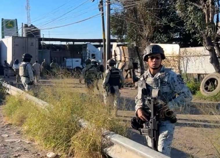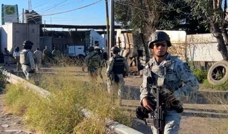 Soldados del Ejército Mexicano como de la Guardia Nacional resguardan el perímetro de pensión. Al mismo tiempo, agentes de la Fiscalía General de la República (FGR) realizaron un cateo y diligencias en el interior de la presunta bodega de «huachicol».