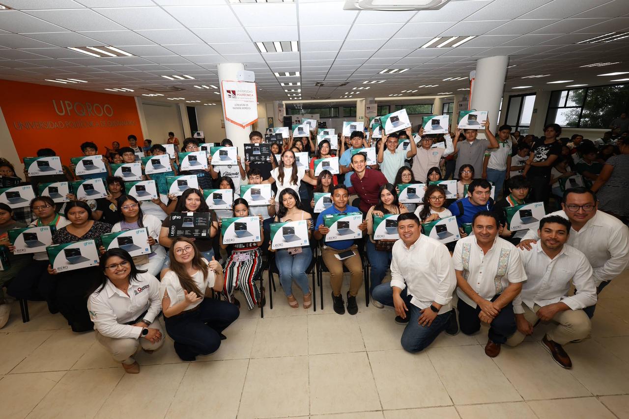 En el evento realizado en las instalaciones de la Universidad Politécnica de Quintana Roo (UPQROO), la Primera Autoridad Municipal subrayó que la computadora es algo más que un aparato, sino un mensaje de confianza y una forma de decirles desde autoridades municipales y académicas, que están trabajando de la mano porque creen en su talento, su futuro y quieren lo mejor para esta nueva generación.