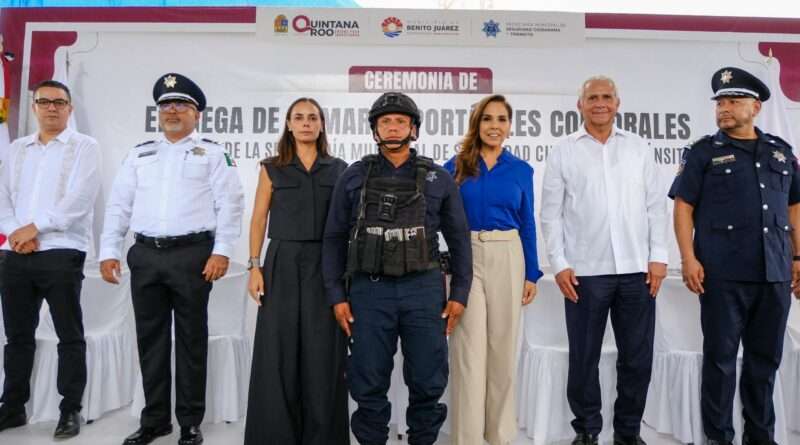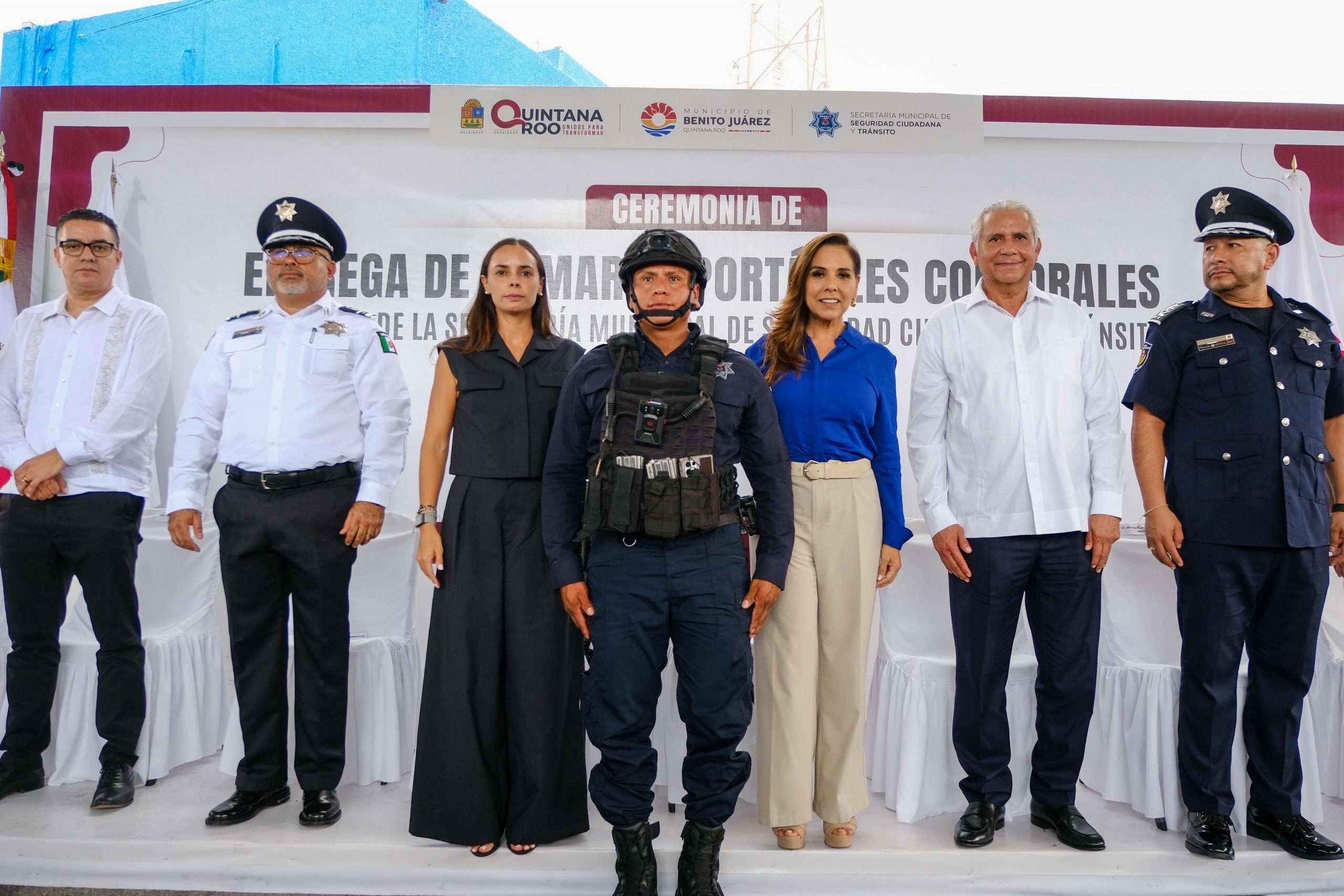 Entregan Mara Lezama y Ana Paty Peralta, 725 cámaras corporales a la policía de Benito Juárez para reforzar seguridad y transparentar la actuación policial