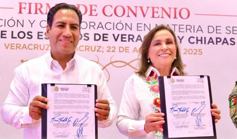 Los Gobiernos de los estados de Veracruz y Chiapas firmaron este viernes 22 de agosto un convenio de coordinación y colaboración en materia de seguridad.