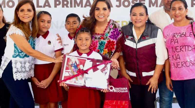 Impulsa Mara Lezama educación y bienestar familiar con la entrega de mochilas, útiles y uniformes escolares, inauguración de domo y acceso gratuito a Canva Educación