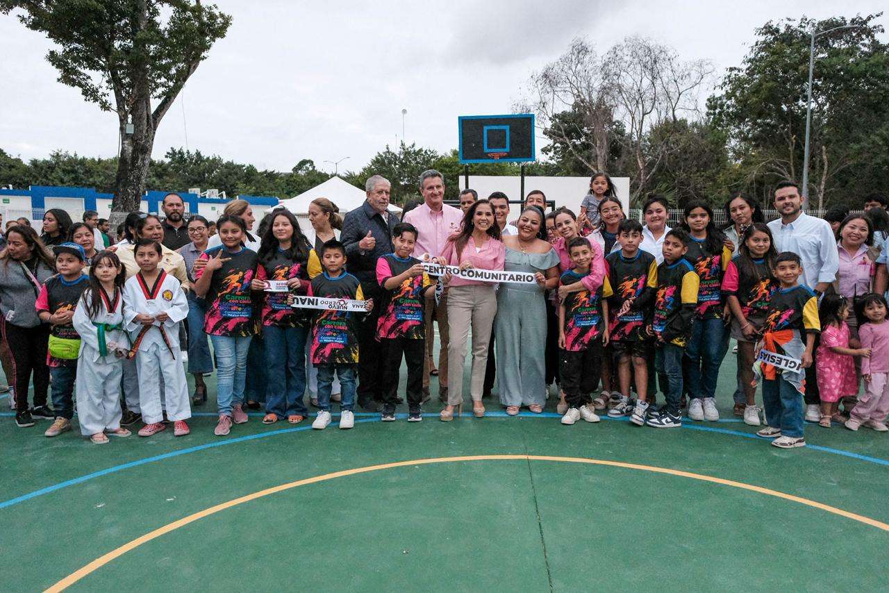 La gobernadora Mara Lezama Espinosa inauguró la segunda etapa del Centro Comunitario “Javier Olvera Iglesias”, acompañando a Erick Olvera Silveira, director general de Entorno y Convivencia AC, que abre nuevas oportunidades de aprendizaje, convivencia y desarrollo para las familias de la colonia Paraíso Maya.
