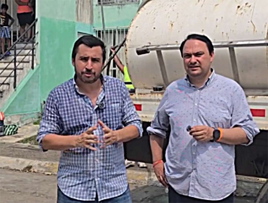 Carbonell y Luciano, cada vez que “hacen el favor” de llevar agua a los damnificados señalan que la donación es en nombre de su coordinador nacional Jorge Álvarez Máynez.