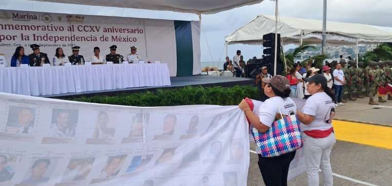 Un grupo de madres buscadoras se manifestó casi al concluir el desfile cívico-militar de la Independencia de México, la mañana del martes en la avenida Costera Miguel Alemán, frente al templete donde se encontraba la presidenta municipal de Acapulco, Abelina López Rodríguez, acompañada por mandos militares, en el punto conocido como Asta Bandera, en el acceso a la playa Papagayo.