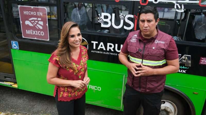 La gobernadora Mara Lezama Espinosa presentó el camión Taruk, el camión 100% eléctrico y fabricado en México, que estará en pruebas operativas como parte del proyecto del servicio de transporte público en Chetumal, la capital del estado.