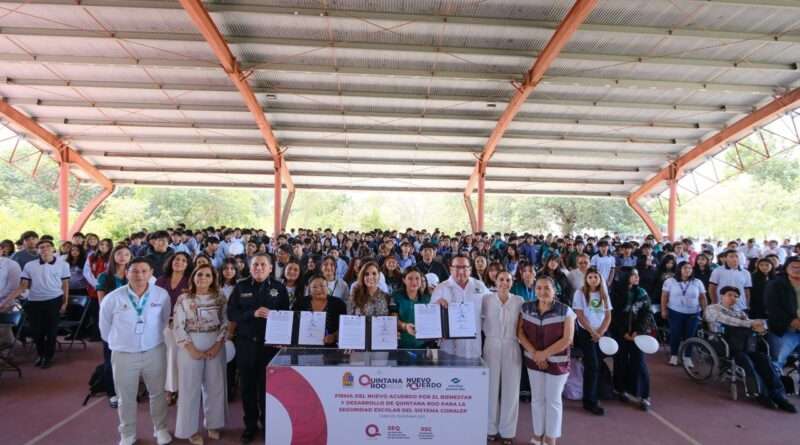 La gobernadora Mara Lezama Espinosa encabezó la firma del Nuevo Acuerdo del Bienestar para fortalecer la seguridad escolar en el sistema CONALEP, en un acto que calificó como histórico al garantizar el derecho de las y los estudiantes a formarse en entornos seguros y en paz.