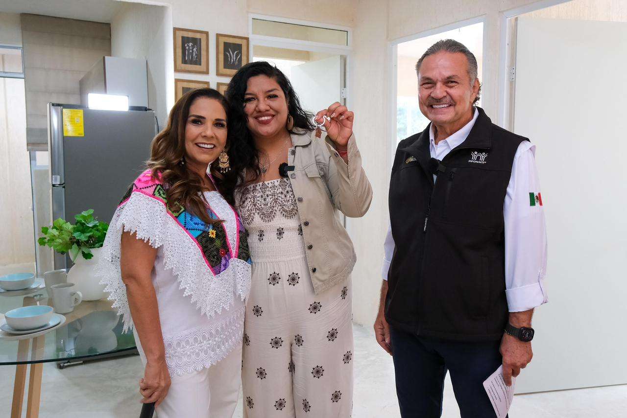 “Este es el segundo piso de la Cuarta Transformación: contar con un patrimonio seguro, que las familias quintanarroenses tengan un hogar, ¡compartir la prosperidad con nuestras trabajadoras y trabajadores!” expresó Mara Lezama durante el enlace.