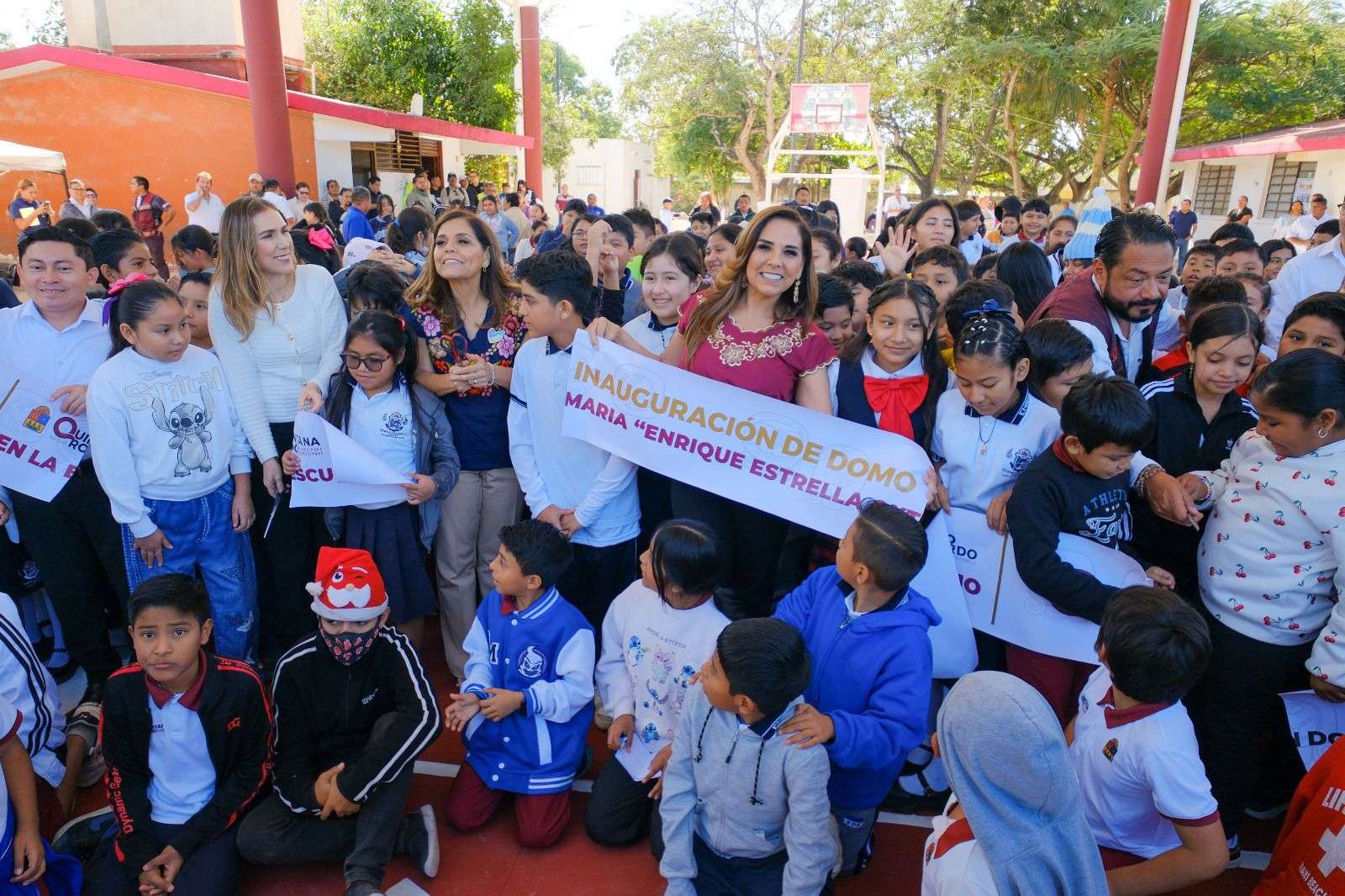 Acompañada de la presidenta municipal de Isla Mujeres, Atenea Gómez Ricalde, y de la presidenta honoraria del DIF Quintana Roo, Verónica Lezama, la titular del Ejecutivo recordó que este domo forma parte de un proyecto de mil 109 en todo el estado, que representa una estrategia para cerrar brechas de desigualdad en las escuelas de la entidad.