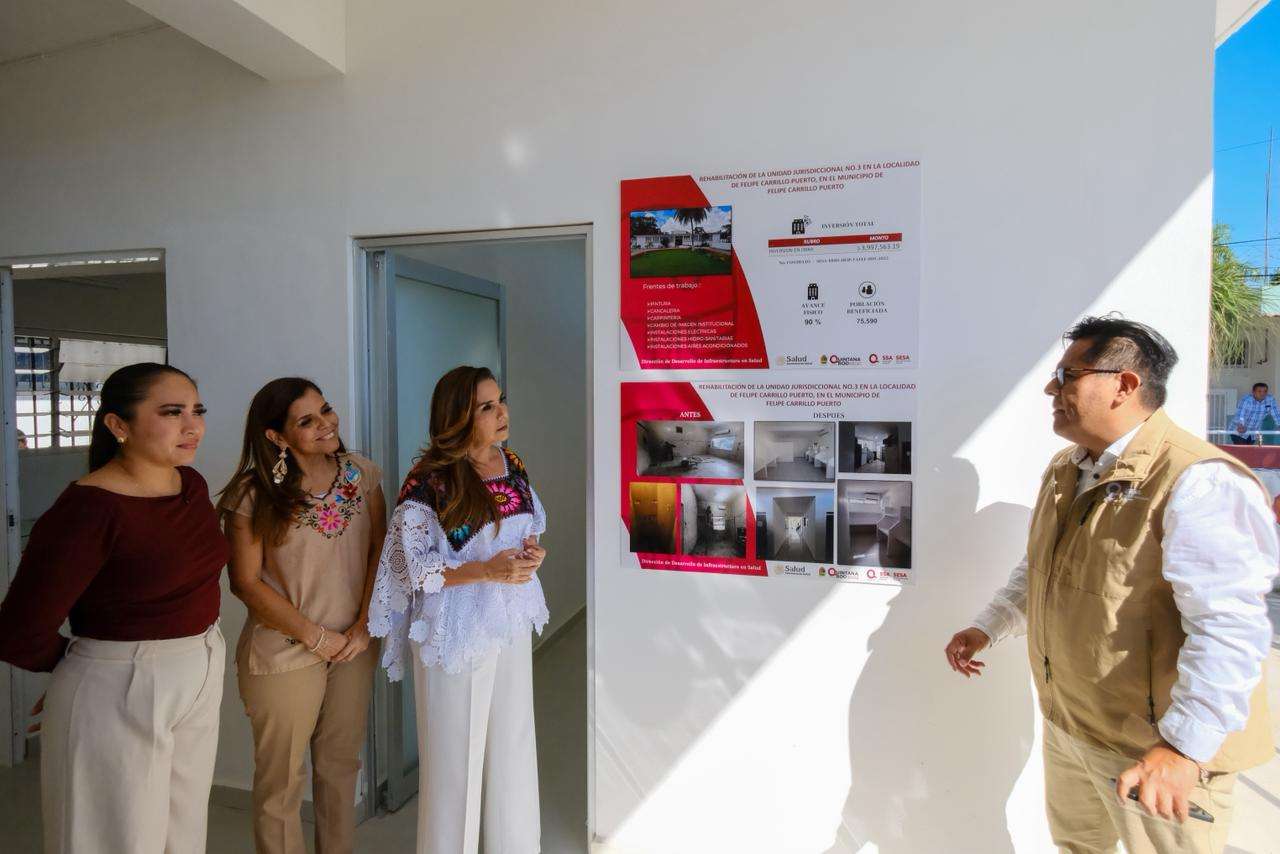 La gobernadora Mara Lezama Espinosa supervisó la rehabilitación del edificio que ocupa la Jurisdicción Sanitaria No. 3, en Felipe Carrillo Puerto, una obra histórica que marca un antes y un después para la atención de la salud en la zona maya del estado, la cual beneficiará a más de 75 mil habitantes.