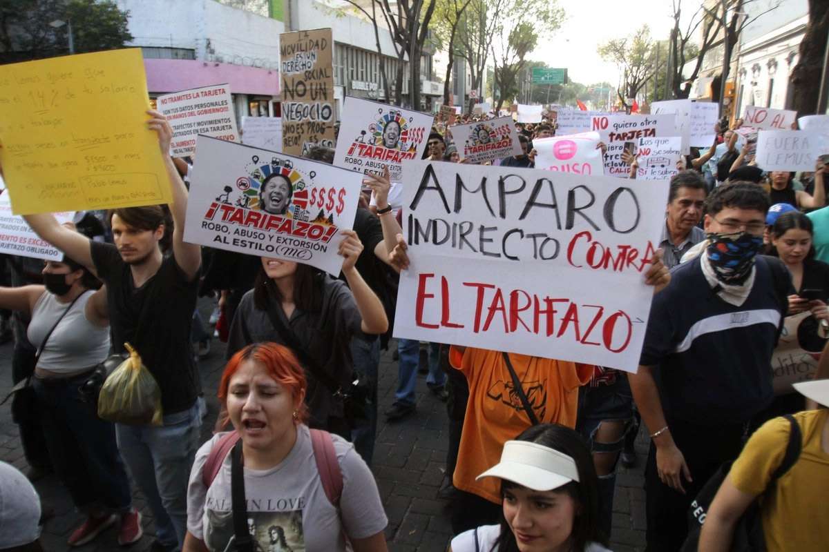 Al menos 500 personas entre adultos mayores, niños, familias y muchos jóvenes, marcharon en el centro de Guadalajara contra el aumento de poco más de 47 por ciento (de 9.50 a 14 pesos) a la tarifa de transporte público, decretado por el gobernador emecista Pablo Lemus, que se aplicará a partir del 1º de abril.