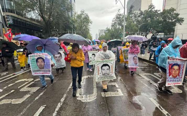 Al conmemorarse el 11 aniversario de la desaparición de los 43 estudiantes de la Normal Rural “Raúl Isidro Burgos” de Ayotzinapa miles de normalistas, integrantes de agrupaciones civiles y defensores de derechos humanos, estudiantes de diversas agrupaciones educativas, así como ONGs aliadas marchan desde el Ángel de la Independencia hacia el Zócalo capitalino en demanda a que se esclarezca lo ocurrido el 26 de septiembre del 2014. La protesta es encabezada por padres y familiares de los estudiantes desparecidos.