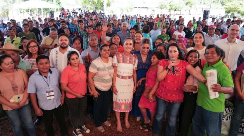 Ante centenares de productores del campo y pobladores de esta comunidad, Sheinbaum dijo que hay una estrategia similar en Zacatecas, Nayarit y Durango con el frijol, para poder embolsarlo y comercializarlo.