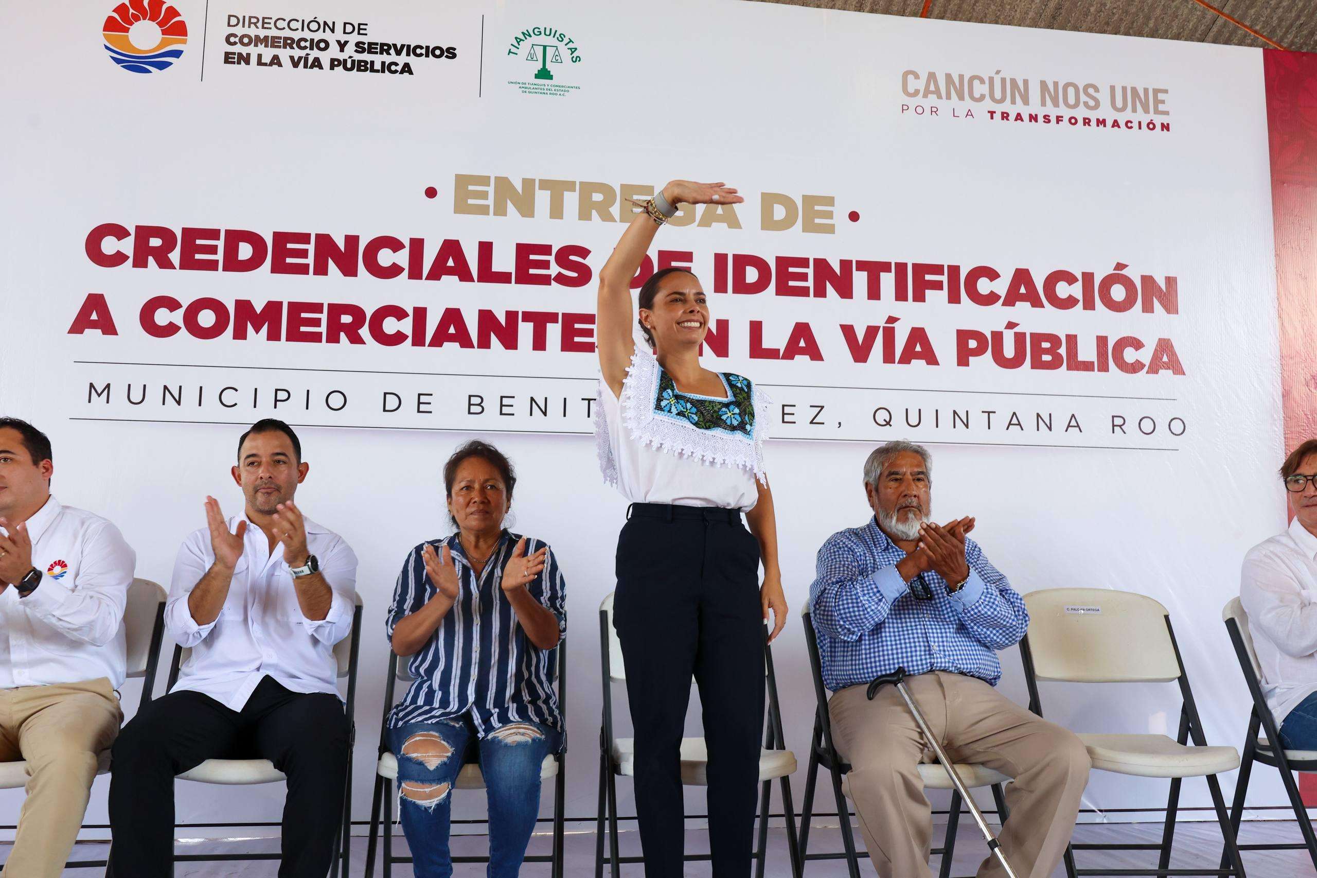 La Presidenta Municipal, Ana Paty Peralta, entregó credenciales a mil 200 afiliados a la Unión de Tianguistas y Comerciantes Ambulantes del Estado de Quintana Roo A.C., como parte del programa de regularización e identificación para quienes ejercen esa importante actividad económica.