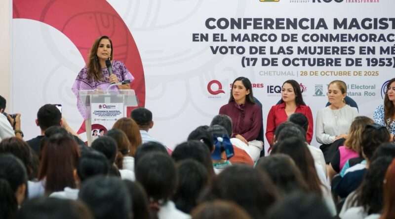 Con motivo de la conmemoración del 72 aniversario del reconocimiento del voto de las mujeres en México, la gobernadora Mara Lezama Espinosa participó en la Conferencia Magistral “Violencia Política de las Mujeres en Razón de Género en Redes Sociales”, evento que reunió a representantes de los tres poderes del Estado, autoridades electorales y académicas.