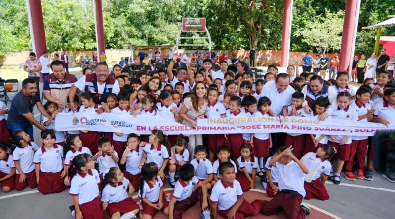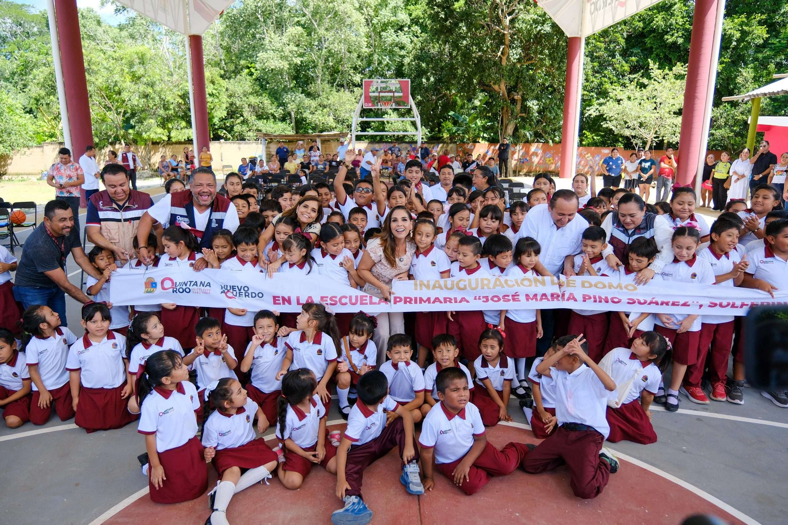 Más de 144 alumnas y alumnos de la Escuela Primaria “José María Pino Suárez” de esta comunidad estrenaron su nuevo domo en la inauguración encabezada por la gobernadora Mara Lezama Espinosa, y con el cual ahora cuentan con un espacio digno, seguro y adecuado para realizar actividades físicas, culturales y cívicas.