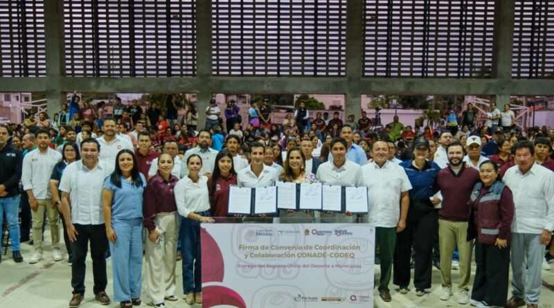 En medio de una auténtica fiesta deportiva, rodeada de atletas, entrenadores, padres y madres de familia, la gobernadora Mara Lezama Espinosa y el titular de la Comisión Nacional de Cultura Física y Deporte (CONADE), Rommel Pacheco, encabezaron la firma de un convenio de coordinación y colaboración que permitirá fortalecer la infraestructura, la capacitación y los programas de activación física en toda la entidad.