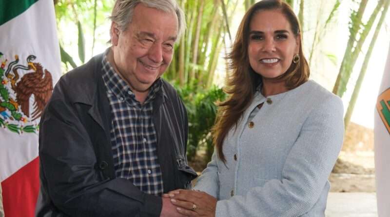 Recibe Mara Lezama en Cancún al Secretario General de la ONU, António Guterres y refrenda compromiso con la agenda global