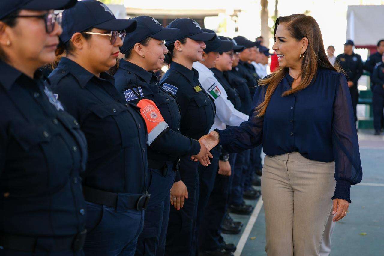 La gobernadora Mara Lezama destacó la importancia de dignificar la labor policial, al dotar a los elementos de mejores herramientas para realizar su trabajo con eficacia y cercanía con la ciudadanía. “Queremos una policía humana, preventiva y cercana, una policía que esté presente en cada colonia, en cada comunidad y en cada rincón de este municipio”, dijo.
