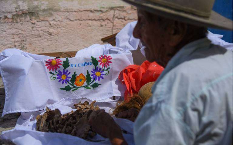 Las osamentas son aseadas cuidadosamente con brochas o trapos, además se decoran los osarios y año con año es remplazado el paño que acompaña los restos, que además lleva el nombre del difunto.