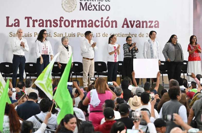 En el marco de su gira nacional para presentar el primer informe de gobierno, Sheinbaum estuvo en el Centro de Convenciones de San Luis Potosí, donde frente a miles de asistentes llamó a los ciudadanos a defender el proyecto de nación de la Cuarta Transformación, al que describió como un modelo que busca justicia social, equidad y bienestar para la mayoría. “Lo más importante es defender este proyecto de nación. Que no regrese el pasado de corrupción y privilegios. Que sigan existiendo gobiernos que dediquen los recursos públicos para la gente”, afirmó.