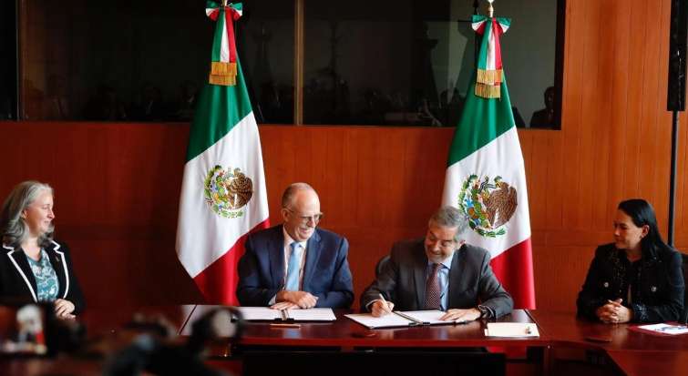 En un acto celebrado en la sede de la Cancillería, el canciller Juan Ramón de la Fuente, el secretario de Agricultura Julio Berdegué Sacristán, la directora ejecutiva de la AMEXCID, Alejandra del Moral Vela, y la directora de Ciencia e Innovación del Centro Internacional de Mejoramiento de Maíz y Trigo (CIMMYT), Sarah Hearne, formalizaron un convenio marco entre la SRE y la SADER, y otro específico entre la AMEXCID y el CIMMYT., de acuerdo con un comunicado.