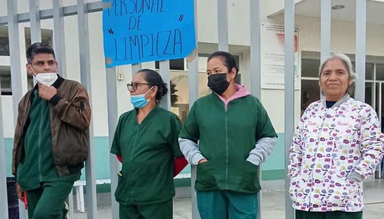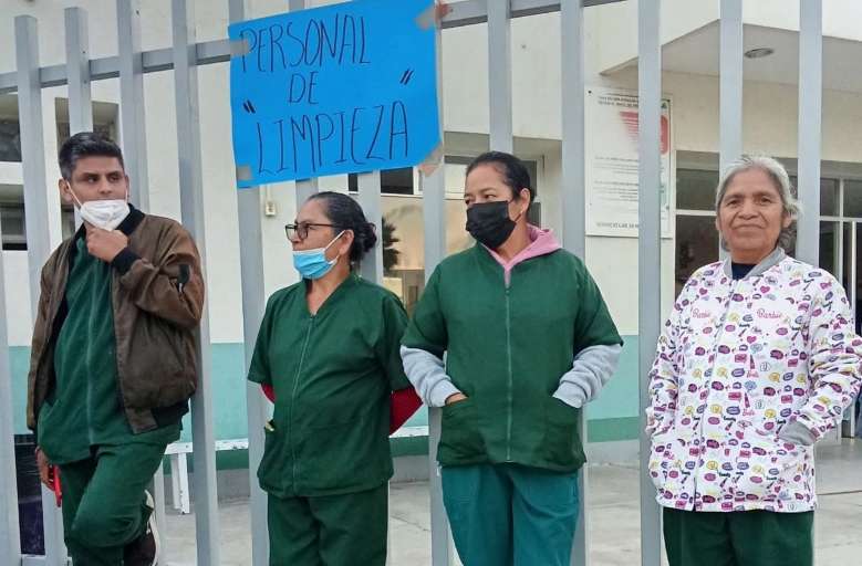 Trabajadores de limpieza, tanto del Hospital Regional del Valle del Mezquital de Ixmiquilpan, como del General de Tulancingo, ambos dependientes del IMSS -Bienestar que laboran bajo el esquema de subcontratación o «outsourcing», se manifestaron de forma pacifica para exigir a la empresa Lamap el pago de sueldos atrasados y finiquitos.