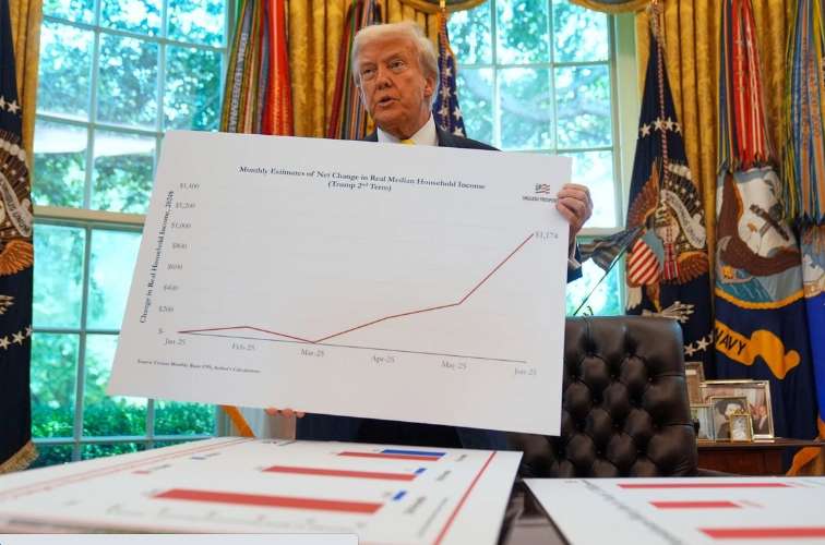 Según los cálculos de Moore, “durante los primeros cinco meses de mandato de Trump, el ingreso familiar promedio, ajustado a la inflación, aumentó en 1.174 dólares”.